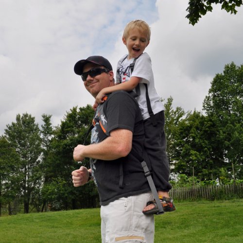 The multi-award winning Piggyback Rider creates a mutually enjoyable, effortless way to carry a child on your back, resetting trends in child transport and replacing bulky strollers and framed backpack carriers. The lightweight, compact, streamlined, unisex design functions like a standard backpack, distributing the child’s weight at your core. Your hands are free, while walking in a more natural upright posture. The child stands firmly on a sturdy leveling, shoulder-strap mounted bar, with integrated grab handles and safety tether for security. Children love the height advantage, rest, and quality time. Piggyback Riders have unlimited year-round use (hiking, touring, amusement parks, parades, and everywhere else you may go. The simplicity and ease of carrying a child with the Piggyback Rider revolutionizes child carriers and engages parents and children in active transport. Ride the Bar!