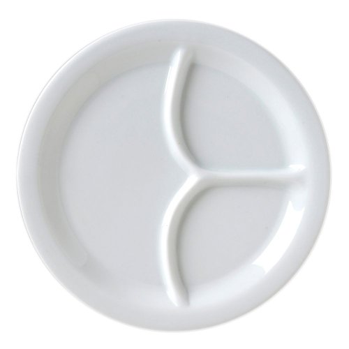 Vertex China Catalina Undecorated Collection 3-Comp Divided PlateThis 3-compartment plate is just what kids need to keep food in separate compartments. Great for casual dining.Additional Information:Pattern: Catalina Undecorated Color: White Lead Free, Vitrified China Dishwasher, Microwave, and Oven Safe Diameter: 9" Case Weight: 38 lbs Case of 2 Dozen FDA Approved Model #: CAT-83 447515